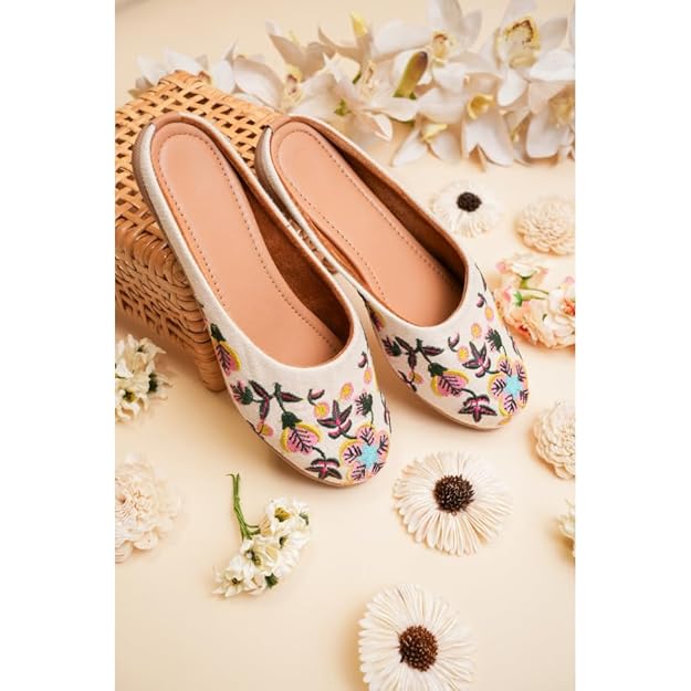 Handmade Jutti Ethnic Shoes Traditional Flat Mojari Embroidered Canvas Slip on Bellies quantity