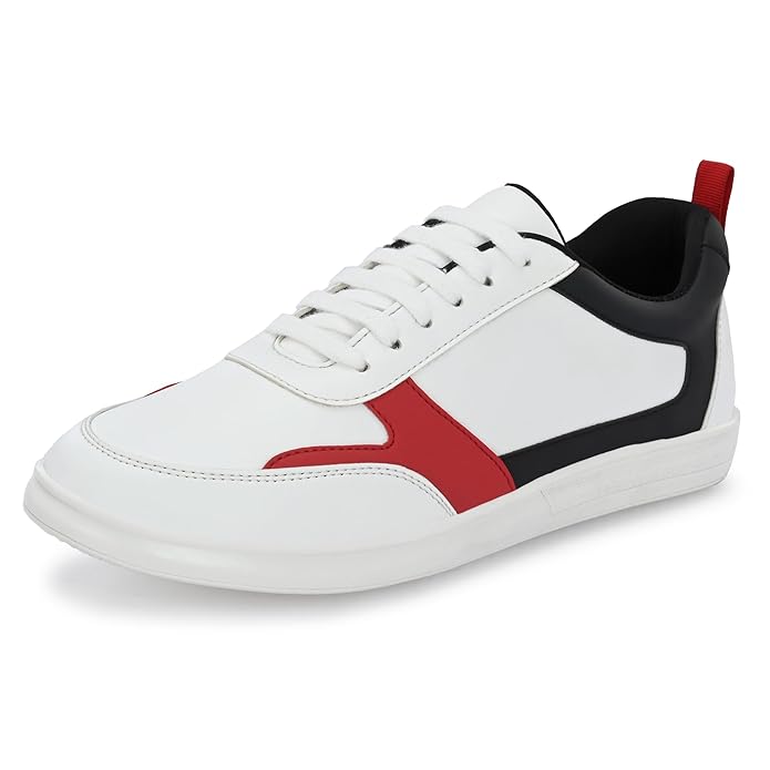 Men’s Casual Shoes Fashion Lace Up Non-Slip Flats Trendy Stylish All Day Comfortable Lightweight Sneakers with Extra Comfort on Heel (Black Red)