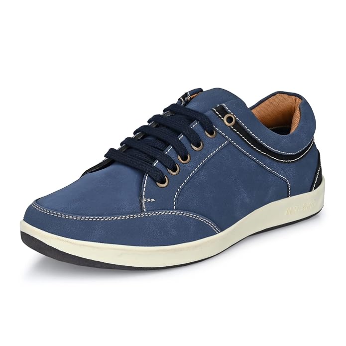 Men’s Causal Sneakers | Sneakers for Men | Lace-Up Design | Rounded Front | Branded Casual Shoes with Soft Cushioned Insole | Fashion Sneakers| Anti Skid Sole (Blue)