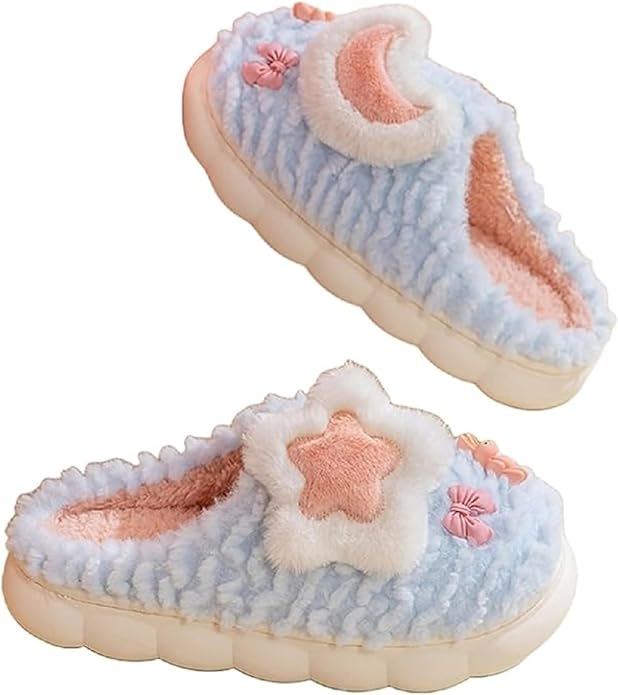 Warm Slipper for Women's Fur Closed Toe Intresting Star Winter Fashion for House & Bedroom Home Indoor Outdoor Sandals (Blue) quantity