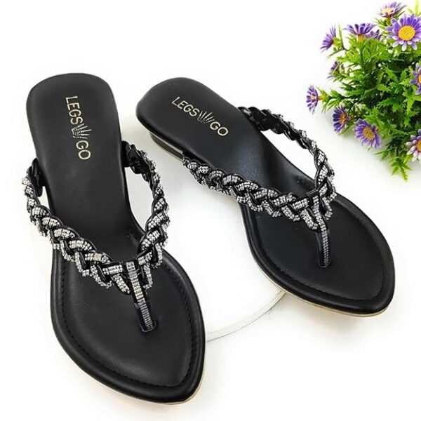 Women's Casual Black Flats | Stylish Beaded Flip Flops quantity